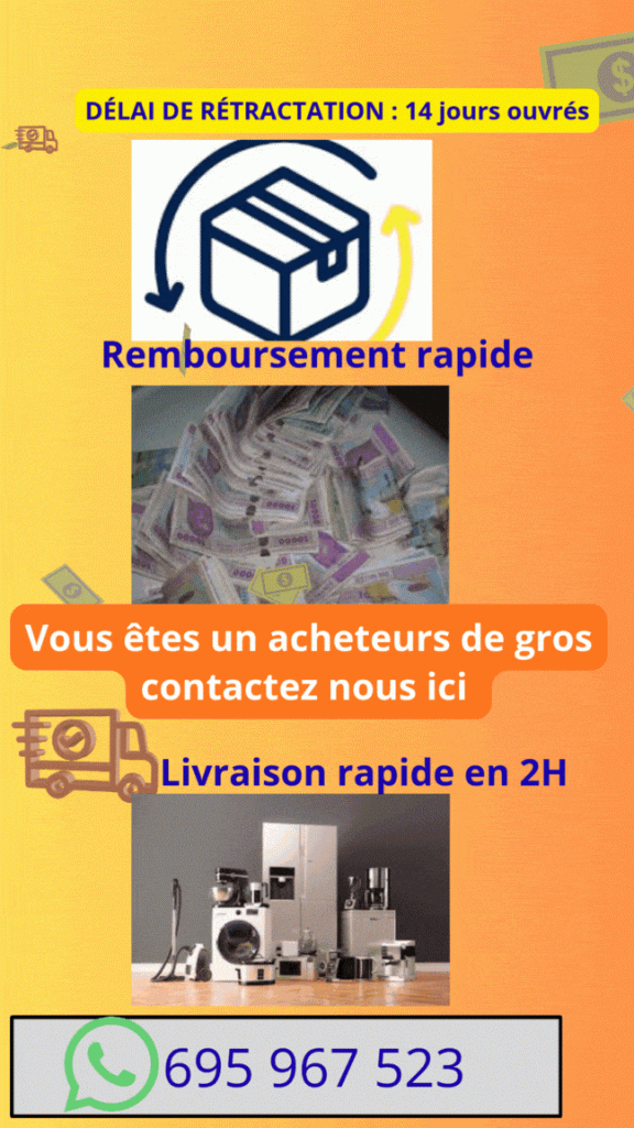 🚚 Nous livrons dans tout le Cameroun, directement à votre porte. Vous pouvez passer votre commande en quelques clics et bénéficier d’une livraison rapide et fiable. Plus besoin de vous déplacer, nous nous chargeons de vous apporter vos achats où que vous soyez.